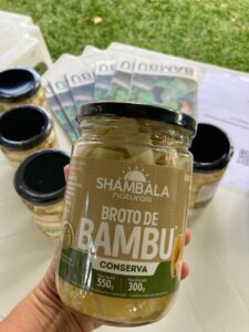 Aqui tem brotos de bambu em conserva, conhece?!