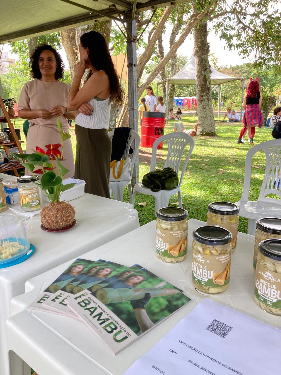 A maioria do público não conhecia o produto, mas tinha curiosidade em provar um pedacinho, que membros da BambuSC, ofereciam para degustação em seu estande. O produto também estava à venda, junto com velas de cera de coco, embutidas em pedaços de bambu roliço, produzidas no Sítio Vagalume, de Rancho Queimado.